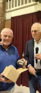 Donderdag 23 oktober was een reguliere speelavond op Bridgeclub Noord. Ondanks dat het al herfstvakantie was, was de opkomst best wel groot. De wedstrijdleider was bezig de drive aan het samenstellen en drankjes werden genoteerd. We wilden net aan de wedstrijd beginnen toen daar Rens Paternote, de voorzitter van het District Groningen binnenkwam. Rens ging ons club wat toespreken toen hij plotseling Fred Bunskoek naar voren riep. Fred die hiervan best wel schrok, snapte het even niet maar het werd al gauw duidelijk dat Fred uit handen van Rens de bridge kei in ontvangst mocht nemen voor al zijn verdiensten voor de bridge.